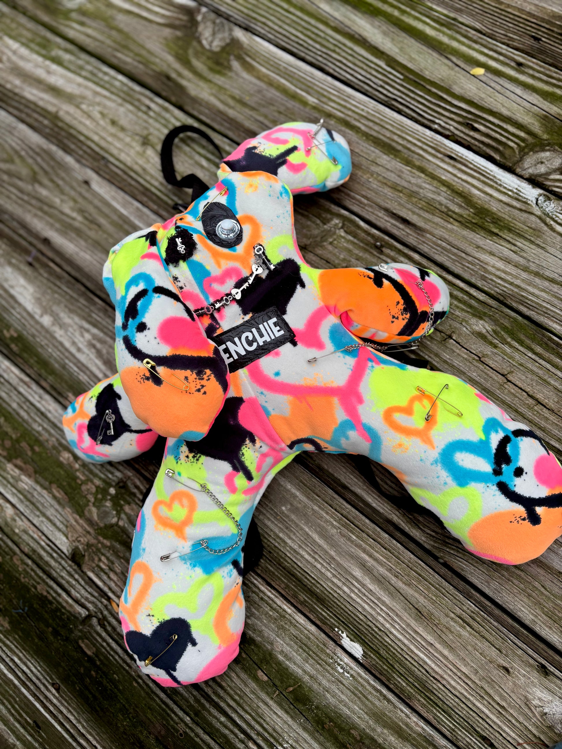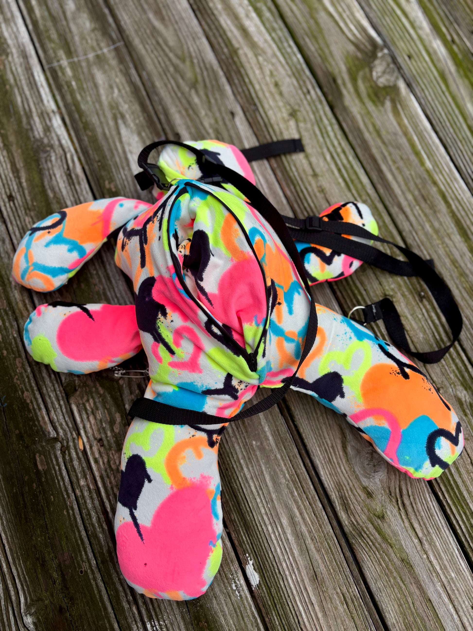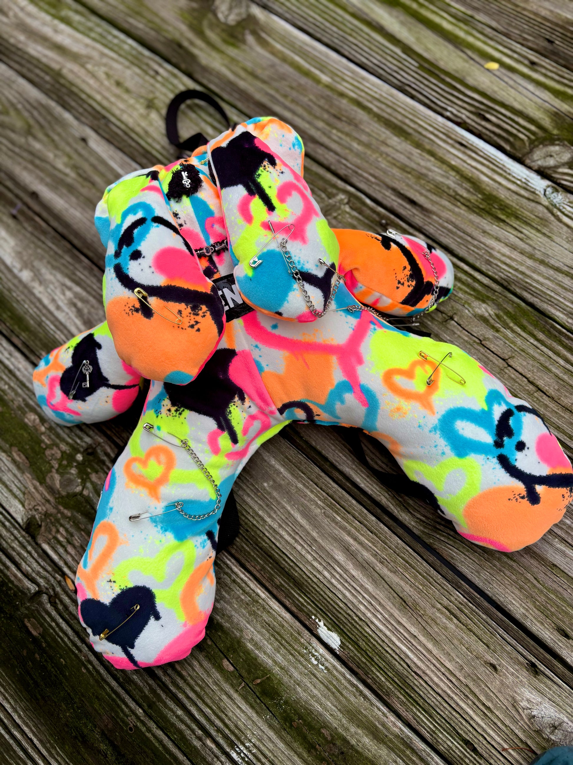 This custom-made backpack is constructed with plush graffiti heart sweater material, creating a unique and eye-catching design. With exceptional durability and a one-of-a-kind style, the Pure Of Hearts Backpack is perfect for the fashion-forward individual looking to make a statement. Show off your personality and stand out from the crowd with this vibrant and versatile accessory.