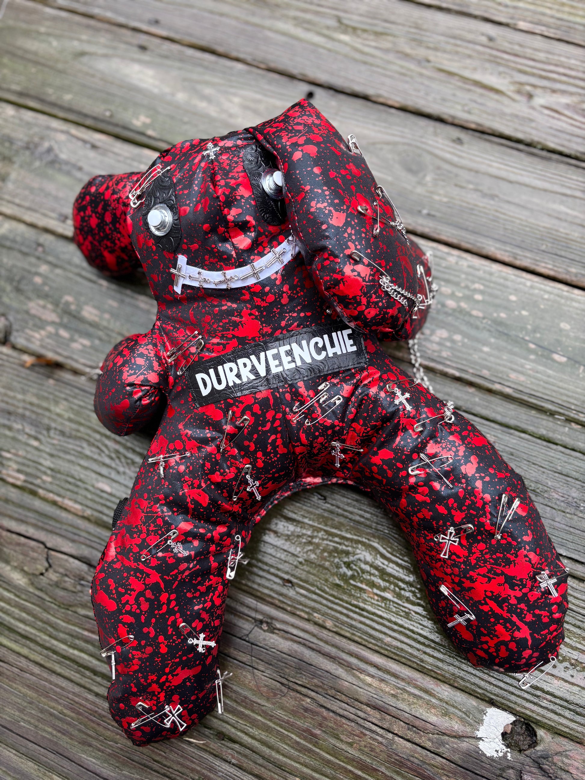This Redrum Plush Backpack features a blood splattered bunny bear adorned with chains and crosses. The small pocket in the back provides convenient storage for your essentials. Perfect for those who appreciate a touch of edginess in their accessories.